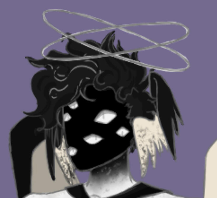 An Angel from above, his main appearance in the game is at the end, judging every action the player will in the story. (Like Anubis and the weighing of the deceasedโs heart.).Character by Kale, drawn by Kale