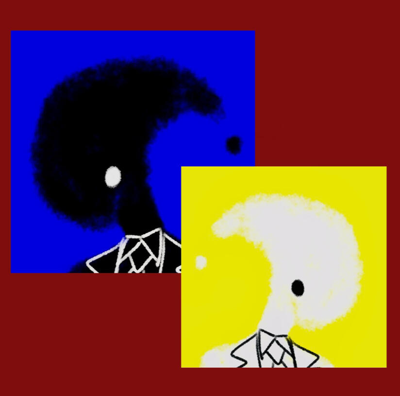 An inverted duo, that of a guiding light of your player's morality, perhaps questioning the one behind the screen.Characters by Luc, drawn by Kris